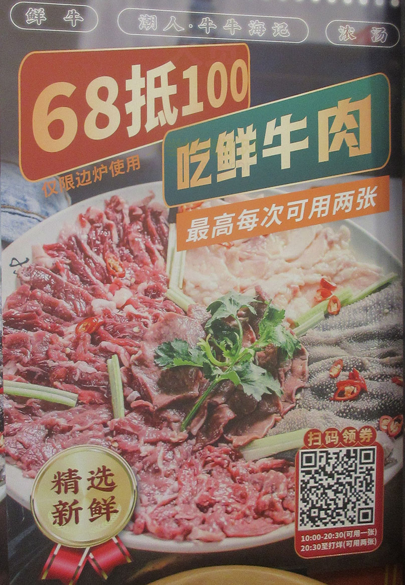 新天地二期二楼南&西外廊道 潮人牛牛·牛杂店 鲜牛杂29元 抵用券68元抵100元 最新已有宵夜供应 | ||||||