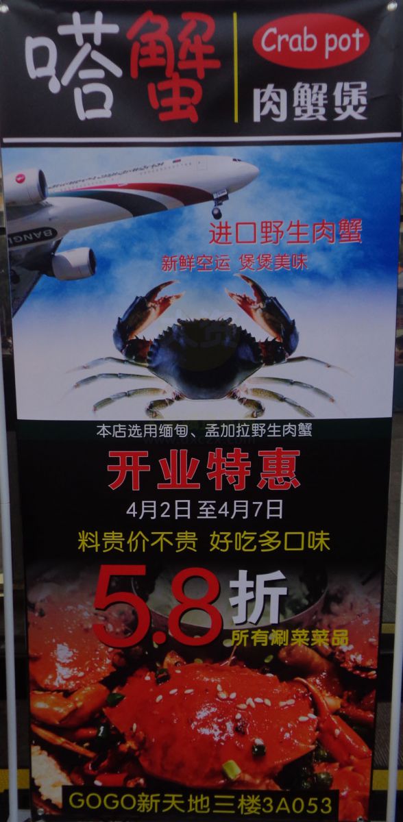 新天地一期三楼北-嗒蟹肉蟹煲开业特惠 | ||||||