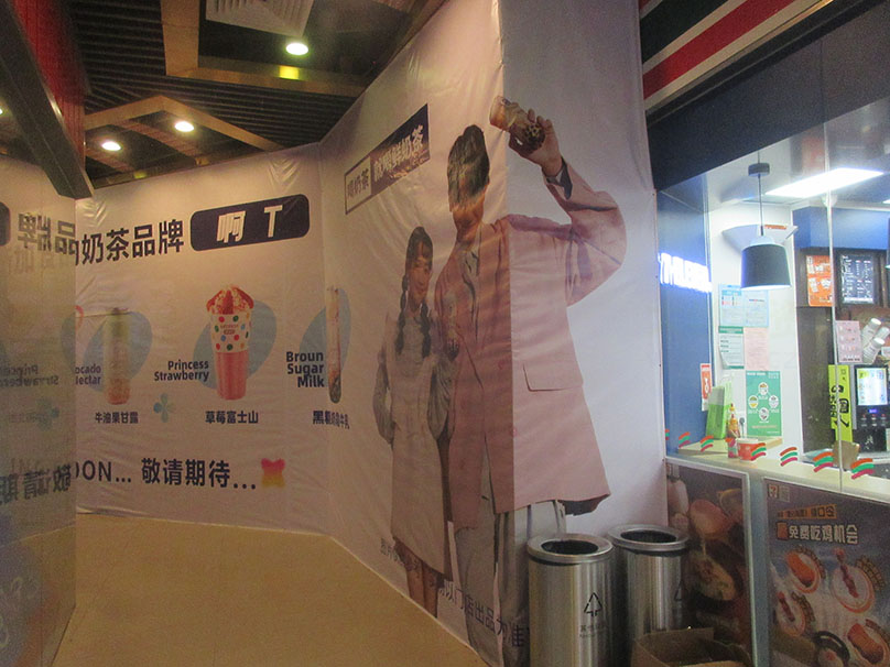 里面看到,该奶茶店占位还不只是原先美心西饼的全部空间,还向后扩增大,后面这里转弯这个铺位先前也是空着好久了,现在正好又新张开一家奶茶店用上了,靠这里边后面开的几家奶茶店基本都是店面前后打通,店内空间都比较倾向大