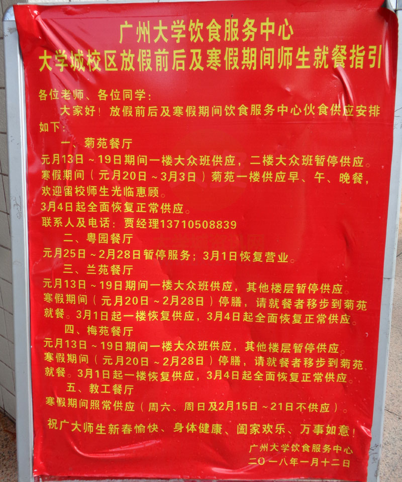 广州大学饮食服务中心大学城校区放假前后及寒假期间师生就餐指引 | ||||||