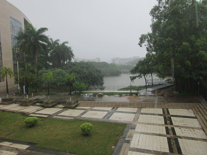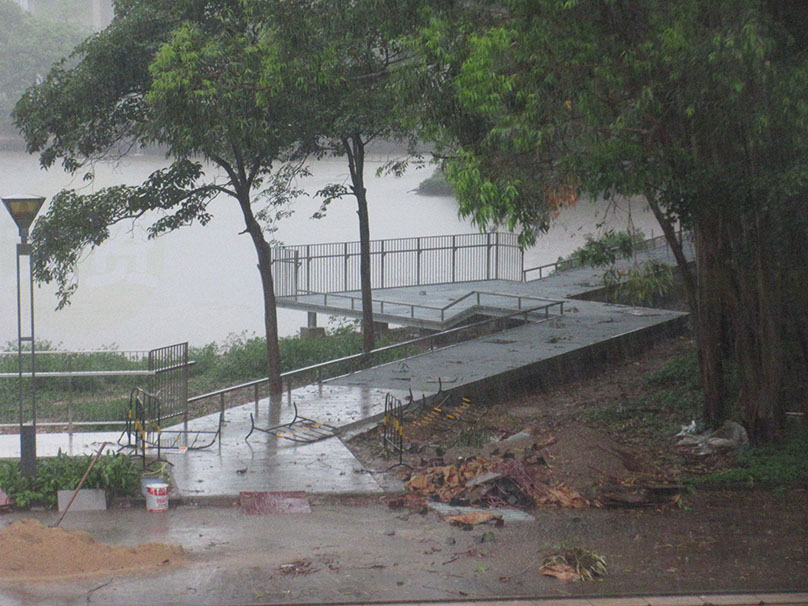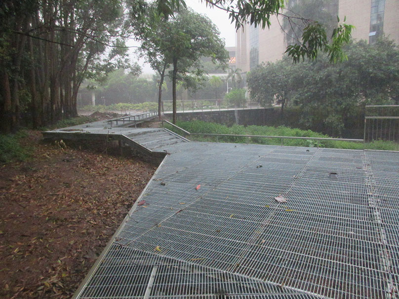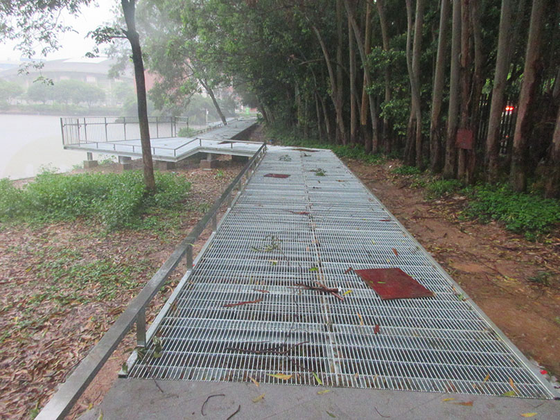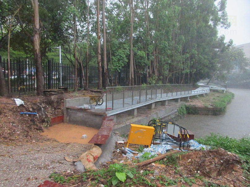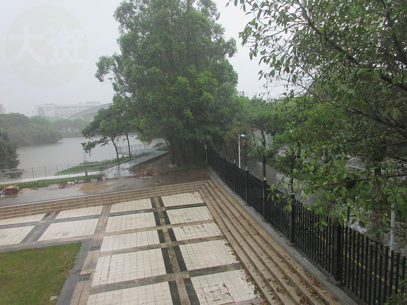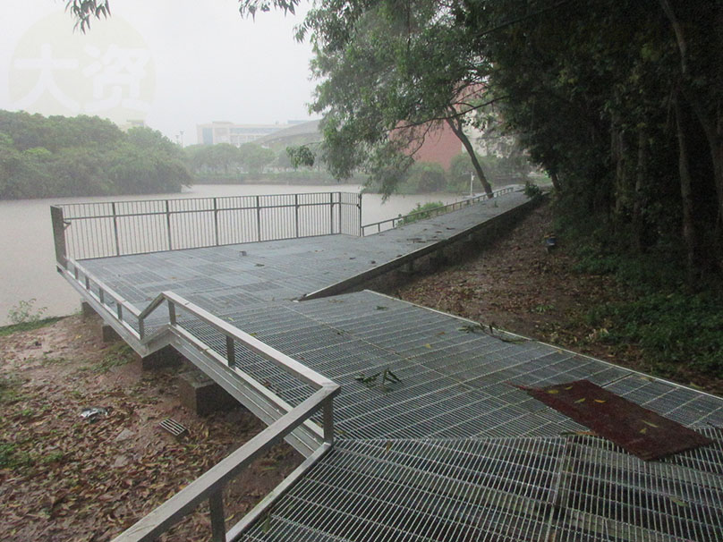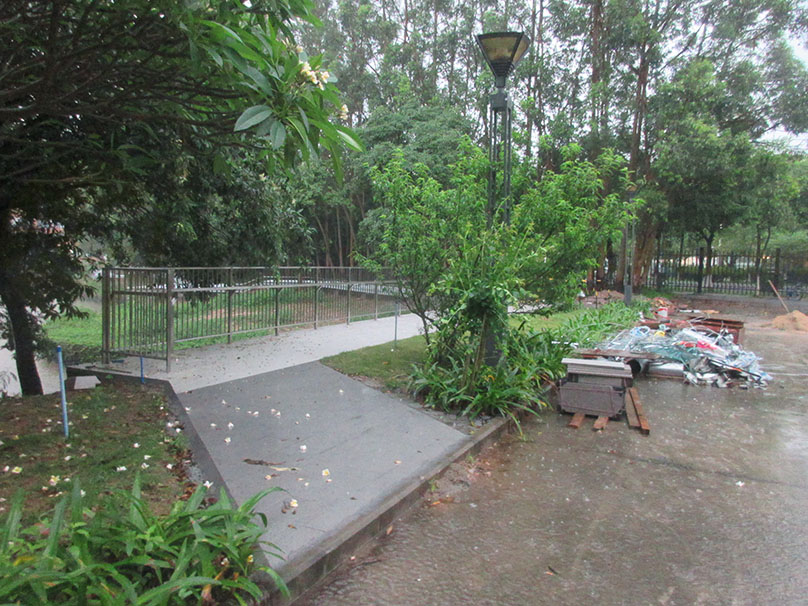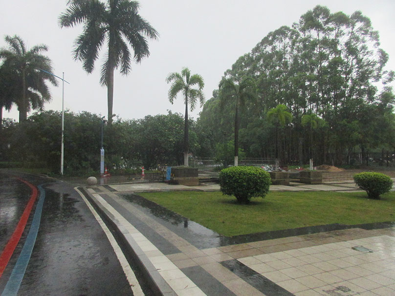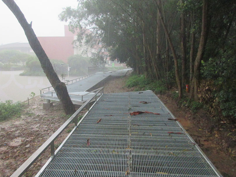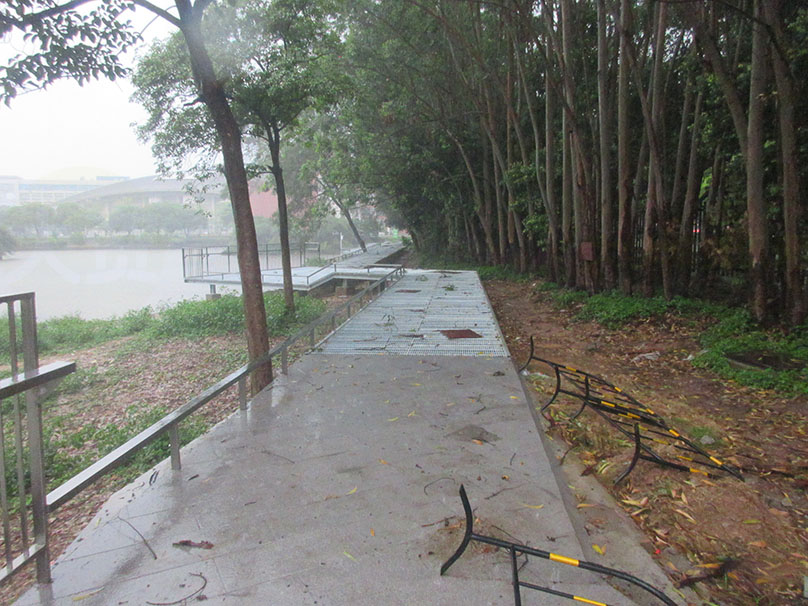 广大教学区图书馆与体育馆之间 沿着湖边与靠中环外侧铁围栏墙之间 还真在修筑一条便道或步道喔 | ||||||