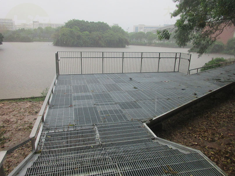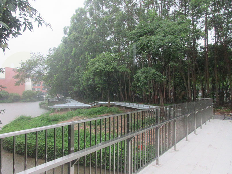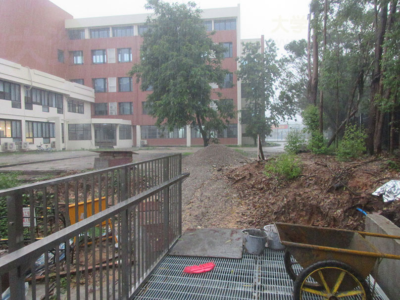广大教学区图书馆与体育馆之间 沿着湖边与靠中环外侧铁围栏墙之间 还真在修筑一条便道或步道喔 早先建议过是跨湖中穿过类似浮桥,距离直接快捷便利 不过能看到挨着湖边开辟出连接过去,也算是不是最佳选择的一件良心事了 毕竟教学区建了这些不必要的铁围栏墙后,交通出行来去等的通畅性是极大不便的