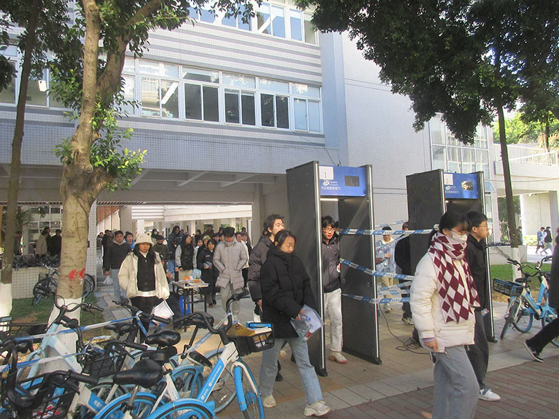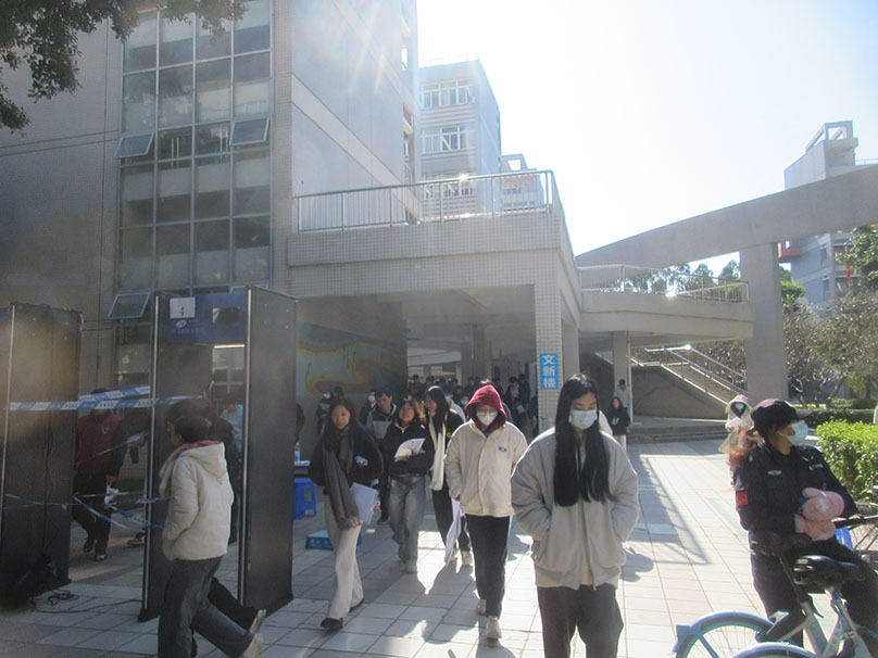 虽然阳光已经比较照射,但是天气依然还是算冷 应该有部分考生已经考完所有科目,下午不用再来了