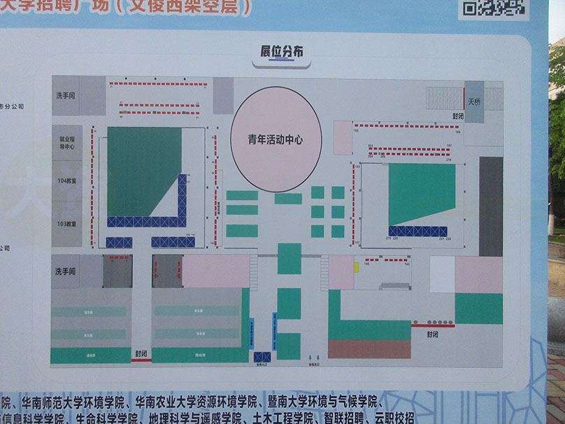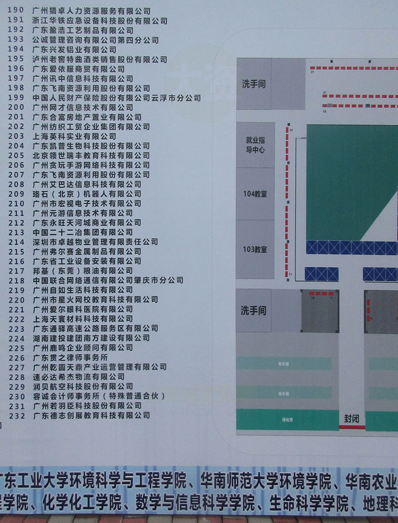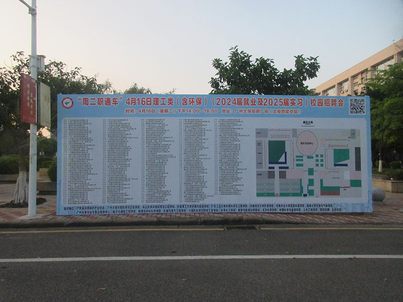 广州大学教学区-文俊东西楼一楼架空层 今天下午看到似进行了一场理工类(含环保)校园招聘会 涵盖就业及实习面向
