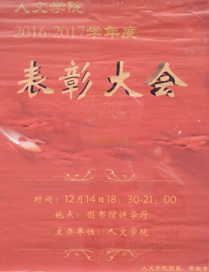 人文学院2016-2017学年度表彰大会 12月14日18:30-21:00图书馆讲学厅 | ||||||