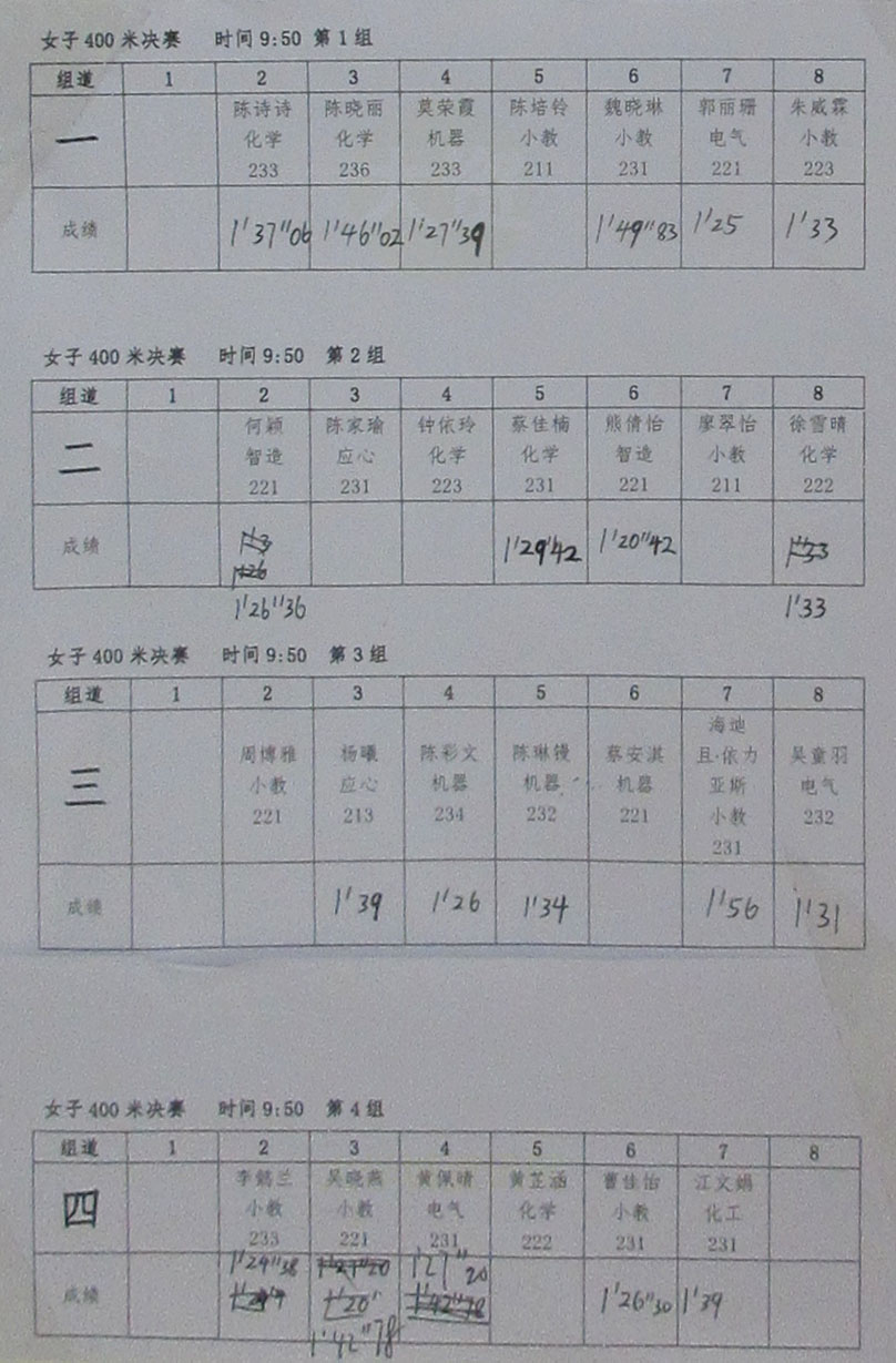 广州大学2023年教育学院 机电学院 化学学院三院联合田径运动会 女子400米决赛各组成绩 |