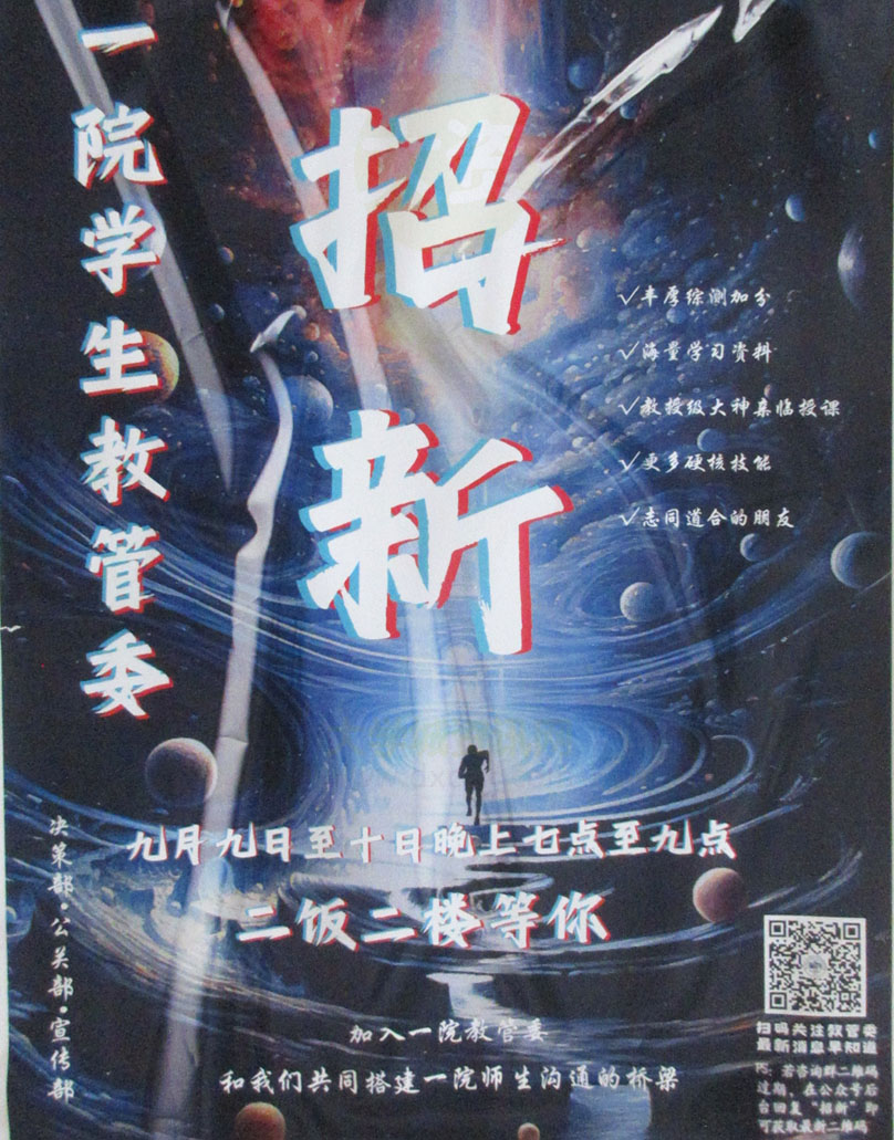 广中医-一院学生教管委2023招新 9月9日-10日晚7点-9点 二饭二楼 |