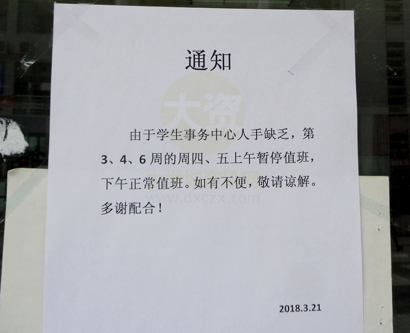 学生事务中心第3、4、6周周四、周五上午暂停值班通知 | ||||||