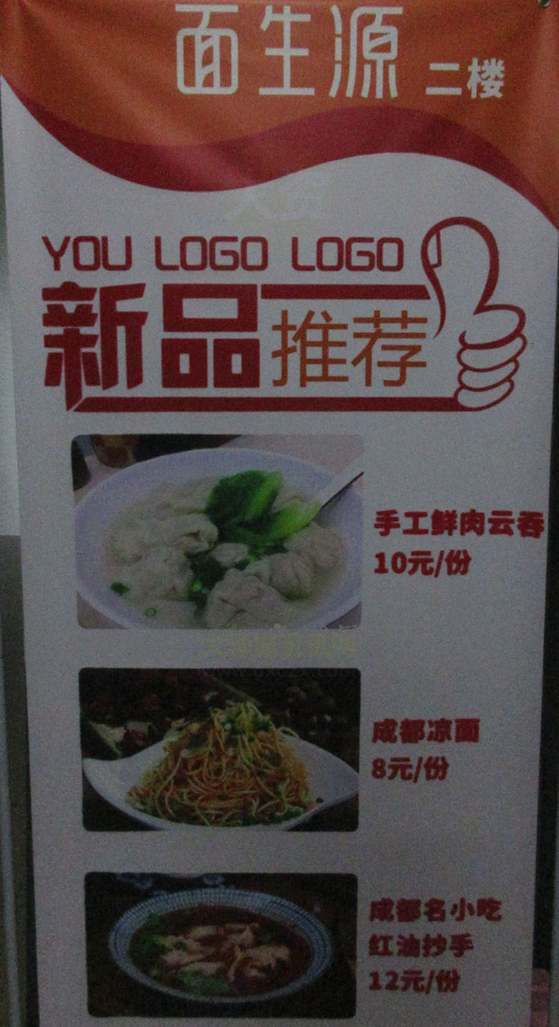 广中医生活区二饭二楼 面生源 新品推荐 手工鲜肉云吞10元1份 成都凉面8元1份 成都名小吃-红油抄手12元1份 |