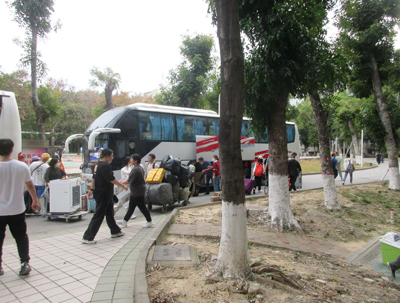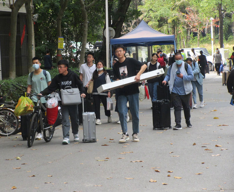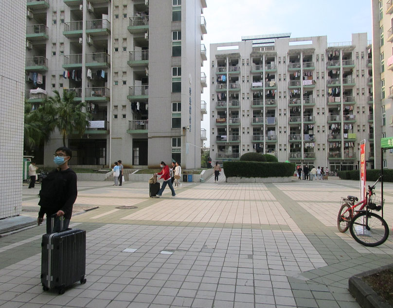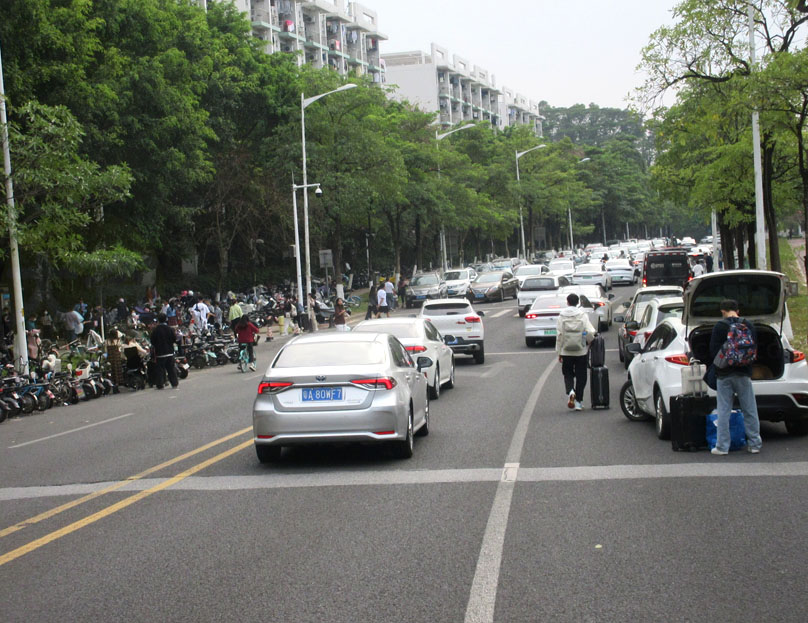 今天是广中医2023春季新学期学生集中返校第一天 生活区侧广中医路 午后实时看着是较显热闹和拥挤的 网约车不停穿梭搭送学生到下 生活区各处也是恢复了久违的人气和喧响 明后天也还将陆续有学生返校,总体看今天已返回较大部分学生,明后天返校将相对较少