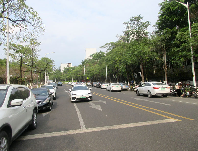 今天是广中医2023春季新学期学生集中返校第一天 生活区侧广中医路 午后实时看着是较显热闹和拥挤的 | ||||||
