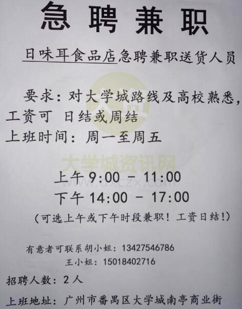 日味耳食品店急聘兼职送货人员(南亭商业街)