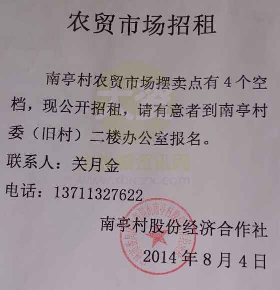 南亭农贸市场(4个空档)招租公告 | ||||||