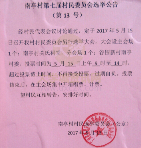 南亭村第七届村民委员会选举公告(第13号) | ||||||