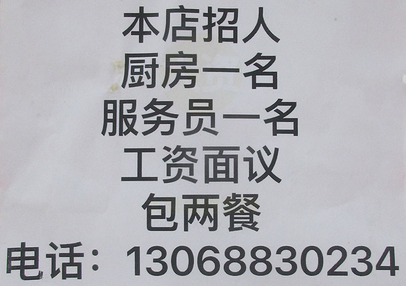 南亭-某餐饮店招厨房一名 服务员一名 工资面议 包两餐 电话13068830234 |