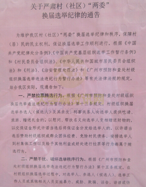 关于严肃村(社区)“两委”换届选举纪律的通知 | ||||||