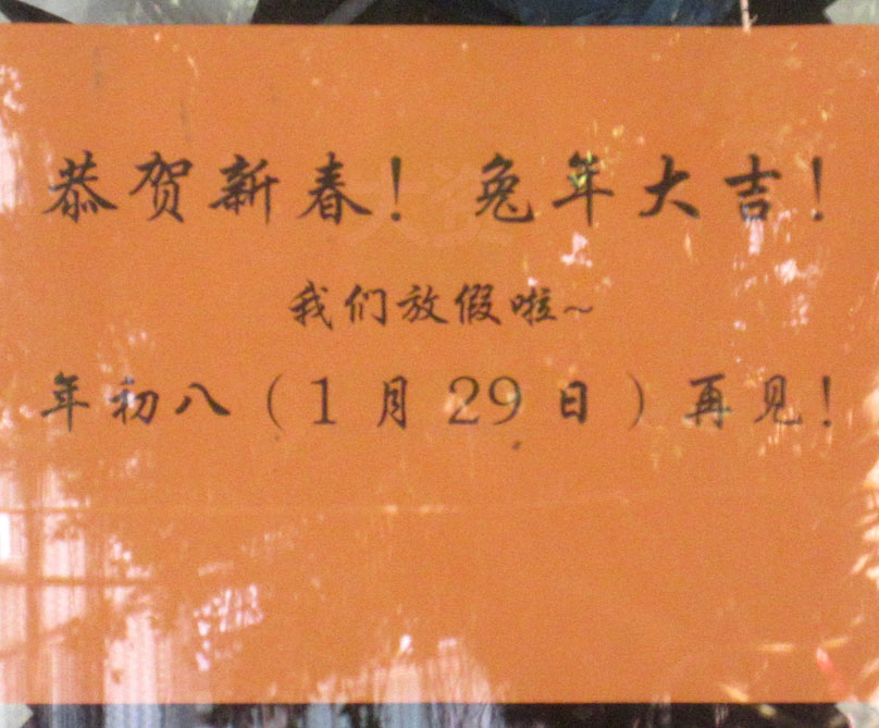 下朗街南端近交汇南亭大道 中华炒饭新年春节放假,年初八(1月29日)恢复营业