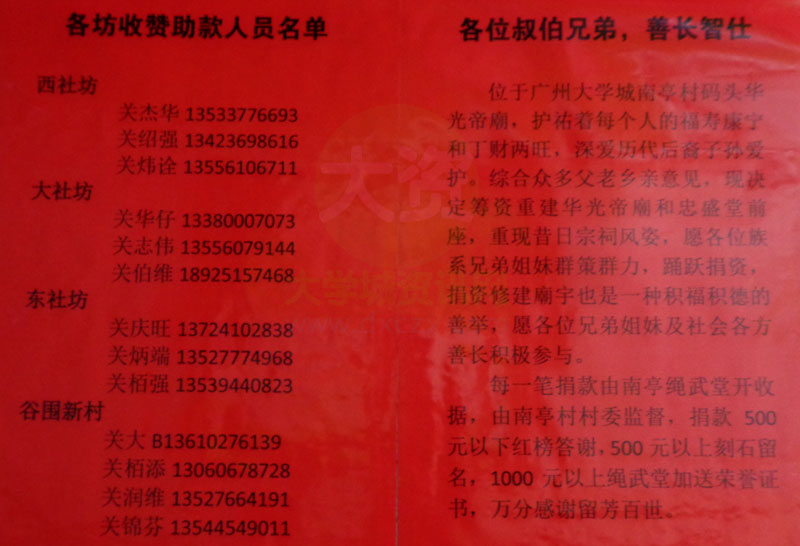 重建华光帝庙和忠盛堂前座筹资募捐公告 附各坊收赞助款人员名单 | ||||||