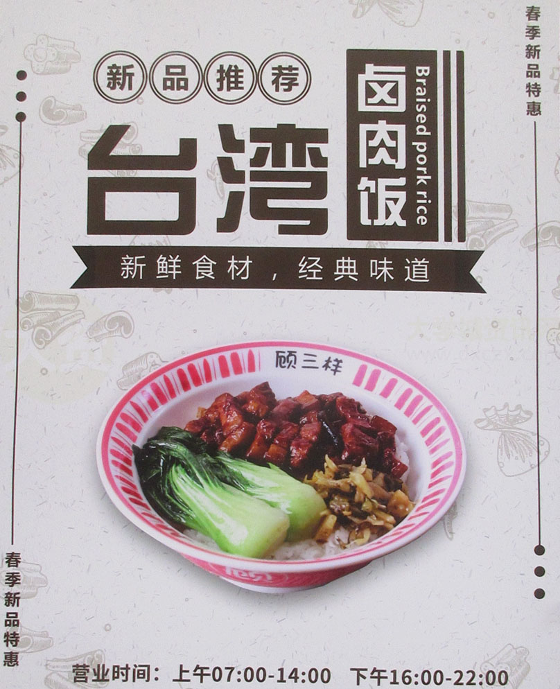 西社大街北 顾三样 新品推荐 台湾卤肉饭 | ||||||