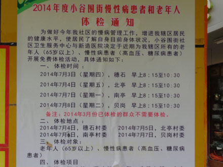 2014年度小谷围街慢性病患者和老年人体检通知发布(涉及四村