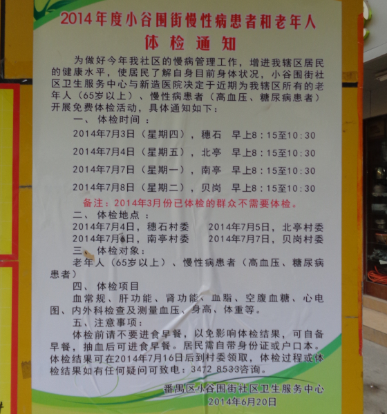 2014.07.01周一-2014年度小谷围街慢性病患者和老年人体检通知发布(涉及四村) | ||||||