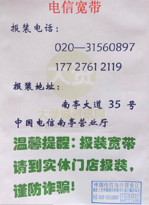 中国电信南亭营业厅电信宽带报装提示 | ||||||