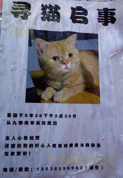 寻猫启事(南亭村西社大街九巷南亭画社跑出) | ||||||