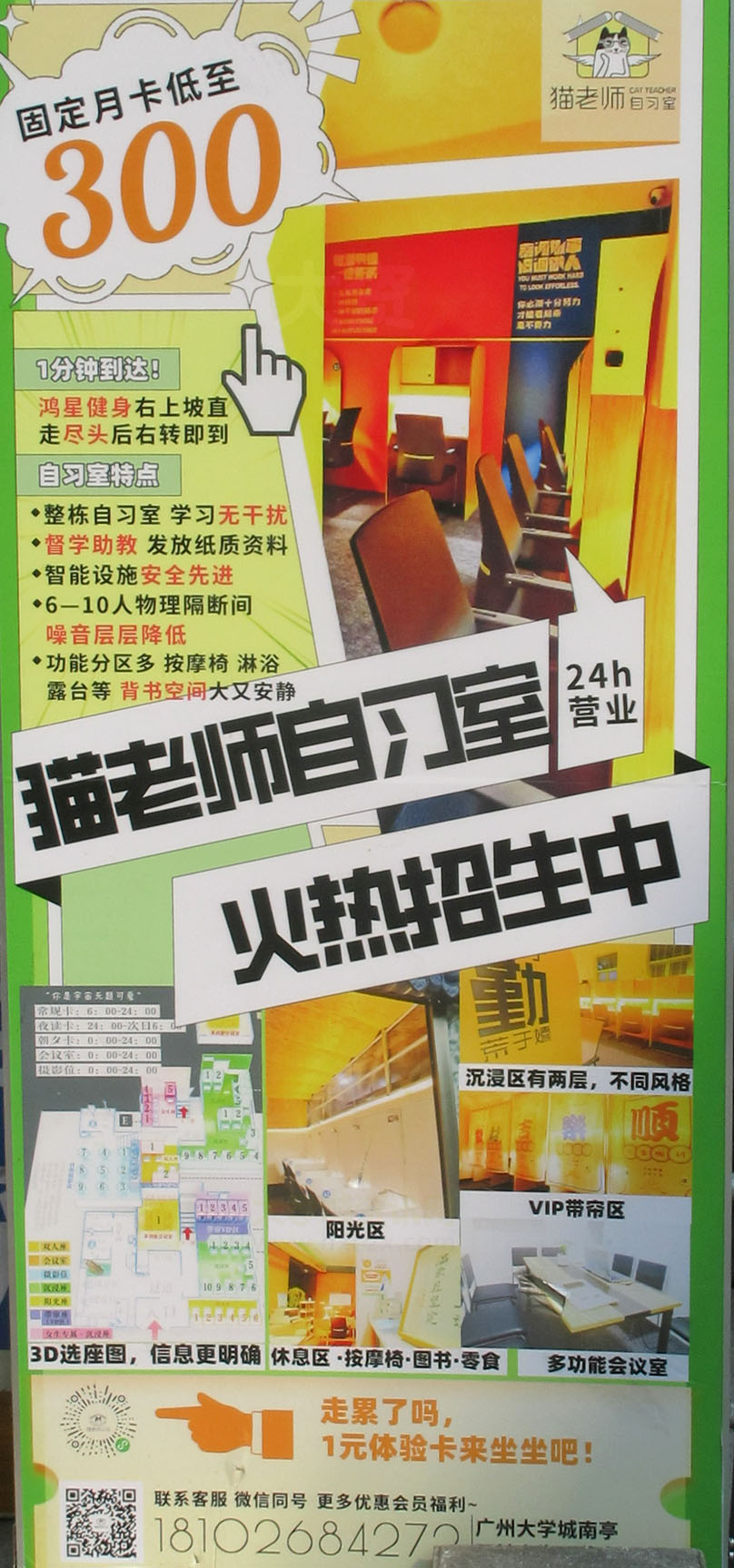 南亭村西岗坡道直上 猫老师自习室 固定月卡低至300元 24小时营业 联系18102684272 微信同号 | ||||||