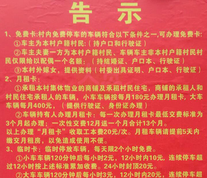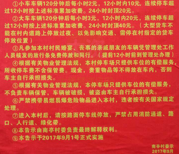 南亭村委关于9月份起村内停车免费卡月租卡临时卡的告示 | ||||||