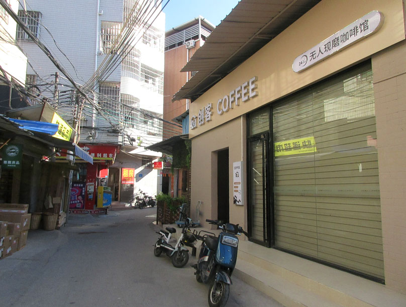 西社大街南 早先看到在开始装修的原学承电脑所在 目前看到是不是已装好了 是做咖啡的 又是创客旗下的,同样是无人自助的,现在看到应该还没正式开