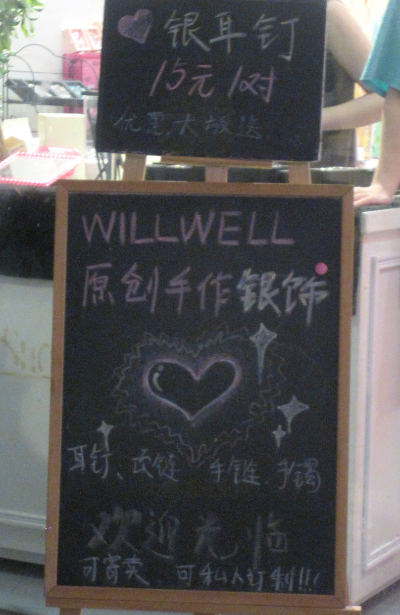 西社大街中 近日看到似乎新开了家银饰店 叫WILLWELL 具体有卖耳钉,项链,手链,手镯等 主打原创手作银饰 还可寄卖以及私人个性化订制 | ||||||