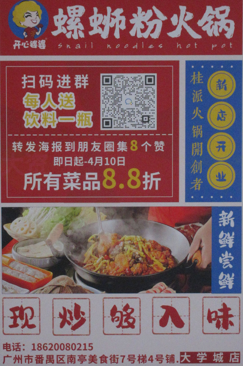 两周多前看到的七号楼南 当时在装修的原禾记煲仔饭 已改做螺蛳粉火锅 发圈集赞菜品有8.8折 | ||||||