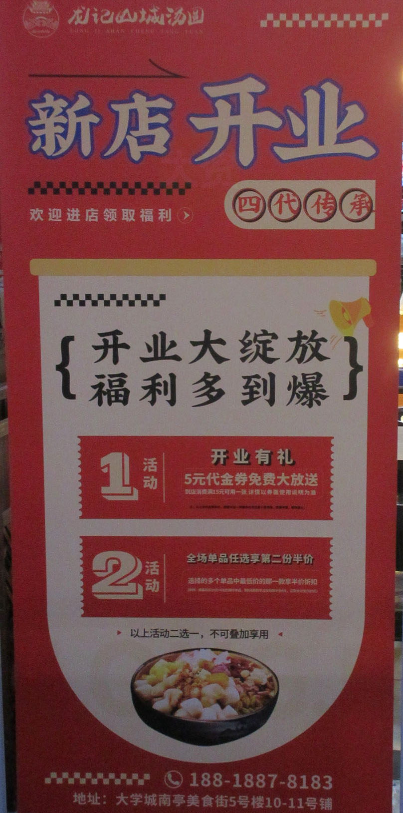 南商街五号楼东列南 这家新店好像已经装修好了 叫龙记山城汤圆酸辣粉 店名似乎挺长的 好像已经开业了 | ||||||