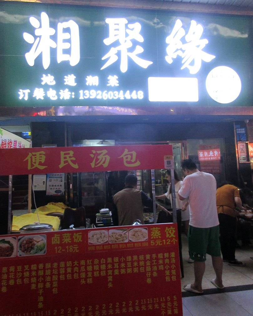 南商街四号楼中 湘聚缘一楼店门前 似增开一个便民汤包摊点 售卖各种包等早餐粥点 同时还有快餐卤菜饭&蒸饺供应 | ||||||