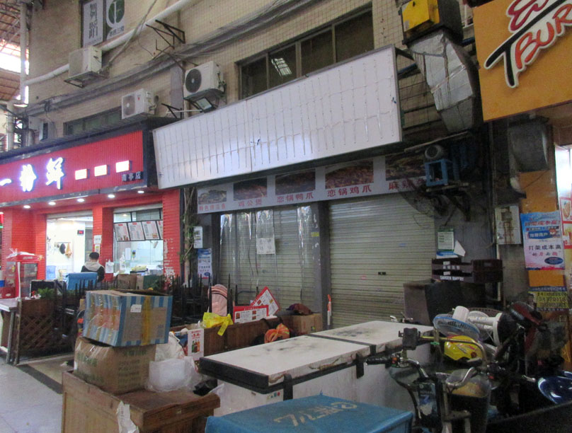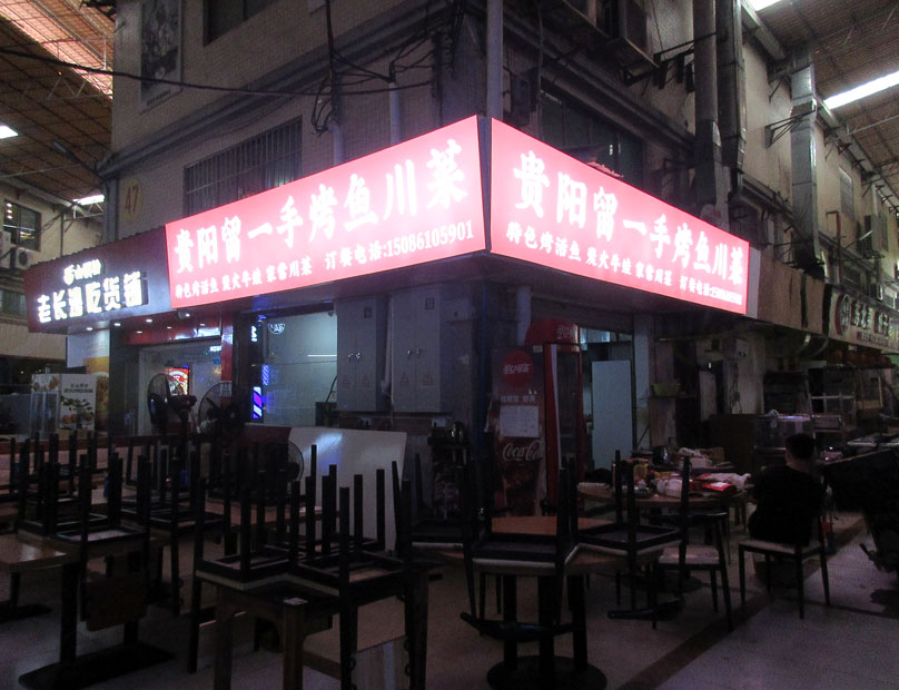 五号楼东列南 贵阳留一手烤鱼鸡公煲似已转到八号楼东南角新位置 门面招牌上看,继续主营烤鱼,新增川菜替代鸡公煲 原位贴着店铺转让 新位置所在似也还未完全整理打点好,但似也已开张营业中