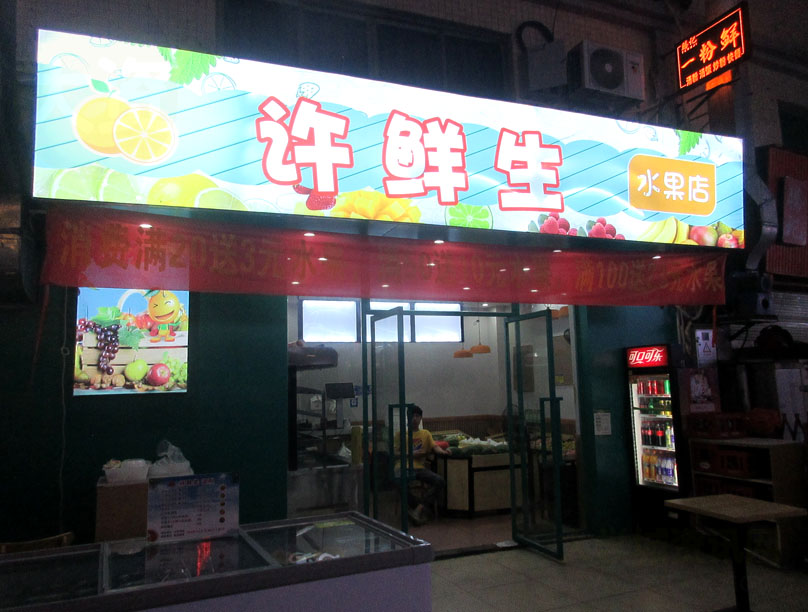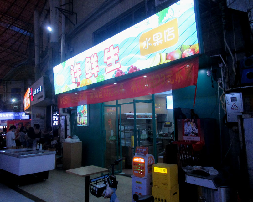南亭商业街内里居然也好像开了一家水果店?位置在四五号楼南之间的五号楼原汤可喝麻辣烫铺位 看到好像也还刚新开业 具体店名叫许鲜生