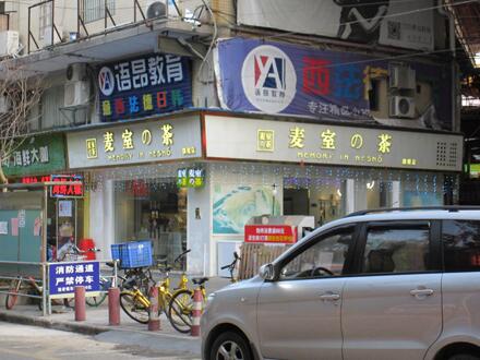 麦室之茶-门面檐下似乎围挂了一排门帘式的闪灯