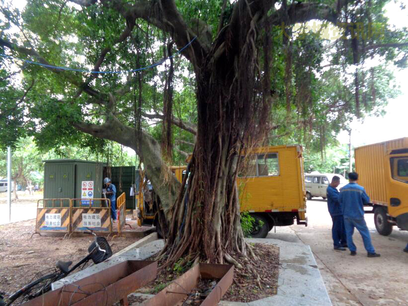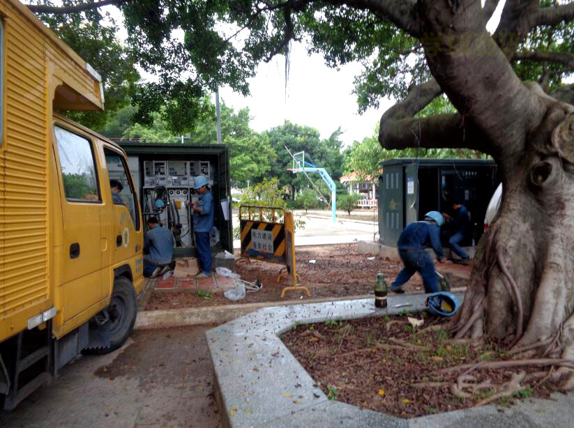 电工正在调配or检修篮球场旁新建变电箱 | ||||||