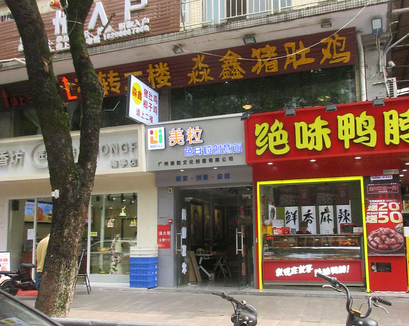 南商街十号楼北列 看到好像很快开了家小型卖画的?叫美粒什么创意画 应该不是什么单纯摆展供看的吧 那应该还是售卖的咯 会有人进看买吗 南亭商业街好像已经很久没有见到开不是餐饮吃喝类的店面&门店了 之前这个位置也是一家小空间纯剪为主理发的 在商业街绝味鸭脖和提香坊蛋糕店之间