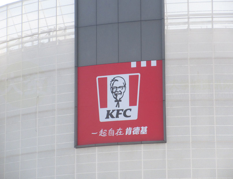 北亭青创汇西北角圆柱体楼外墙北侧较高位置 KFC肯德基似乎新近又增加了个指引标识图案 | ||||||