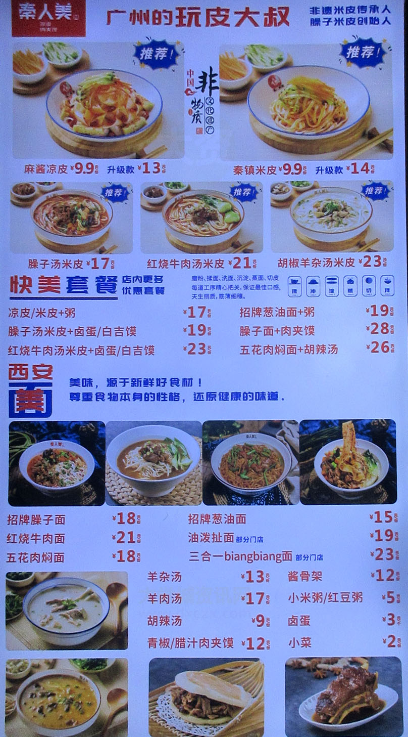 新天地东街南端首店 秦人美食 非遗米皮传承,臊子米皮创始人 臊子汤米皮17元1份、红烧牛肉汤米皮21元1份、胡椒羊杂汤米皮23元1份 | ||||||