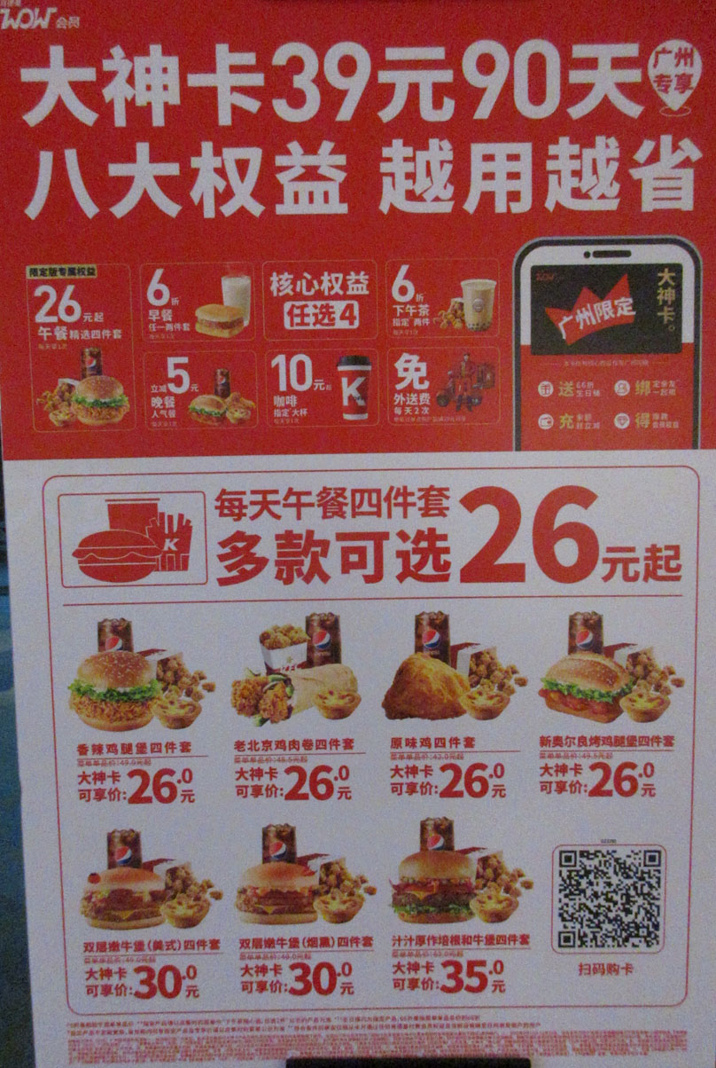 北亭青创汇 肯德基WOW会员 大神卡39元90天,广州专享 八大权益,越用越省 每天午餐四件套多款可选只需26元起 | ||||||