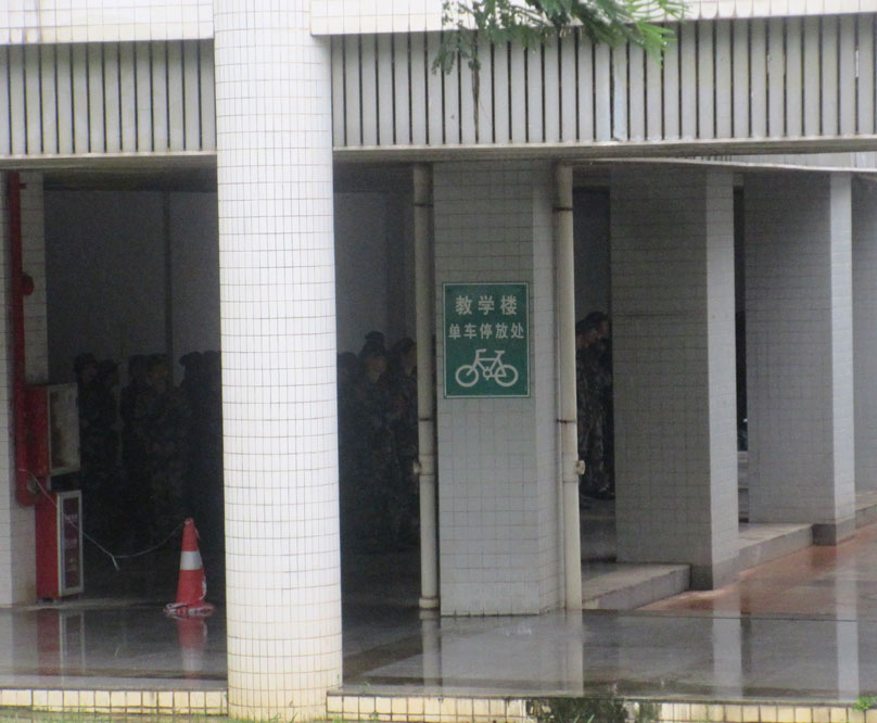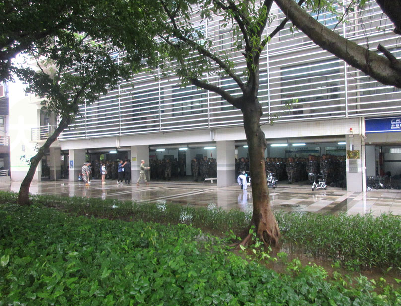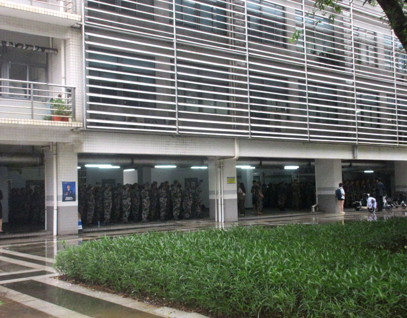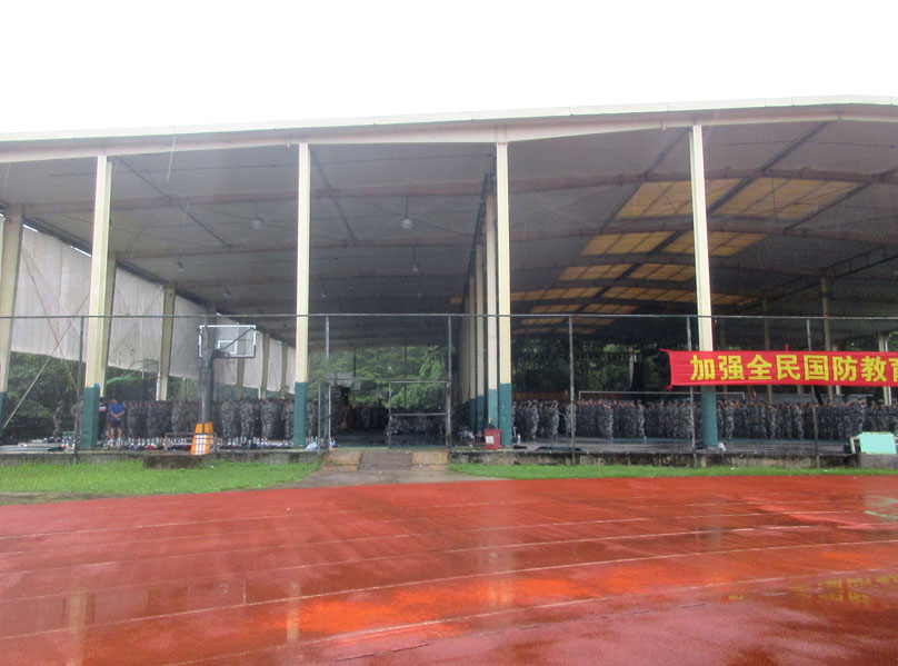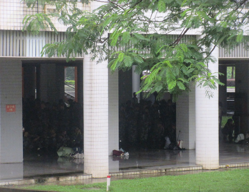 华师的新生军训也开始了 今天的天气基本延续昨天 全天雨水 但军训也都算是有在正常展开的 教学区各教学楼等的一楼架空层和南生活区风雨球场
