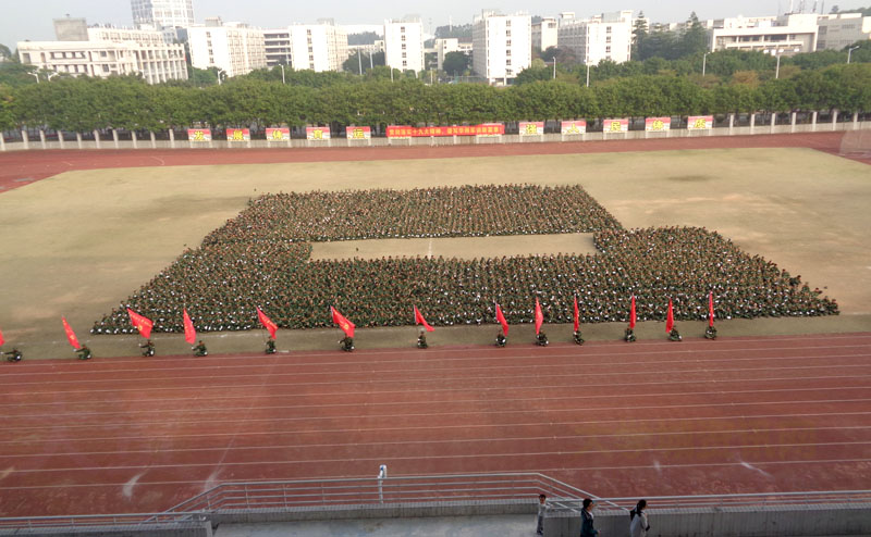 华师-军训阅兵总结表彰大会正在教学区田径场进行ing
