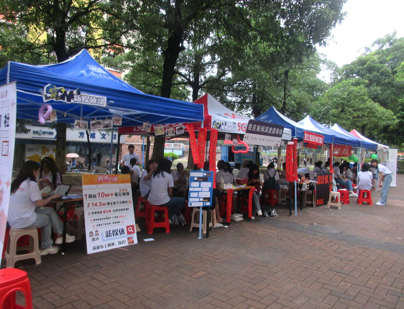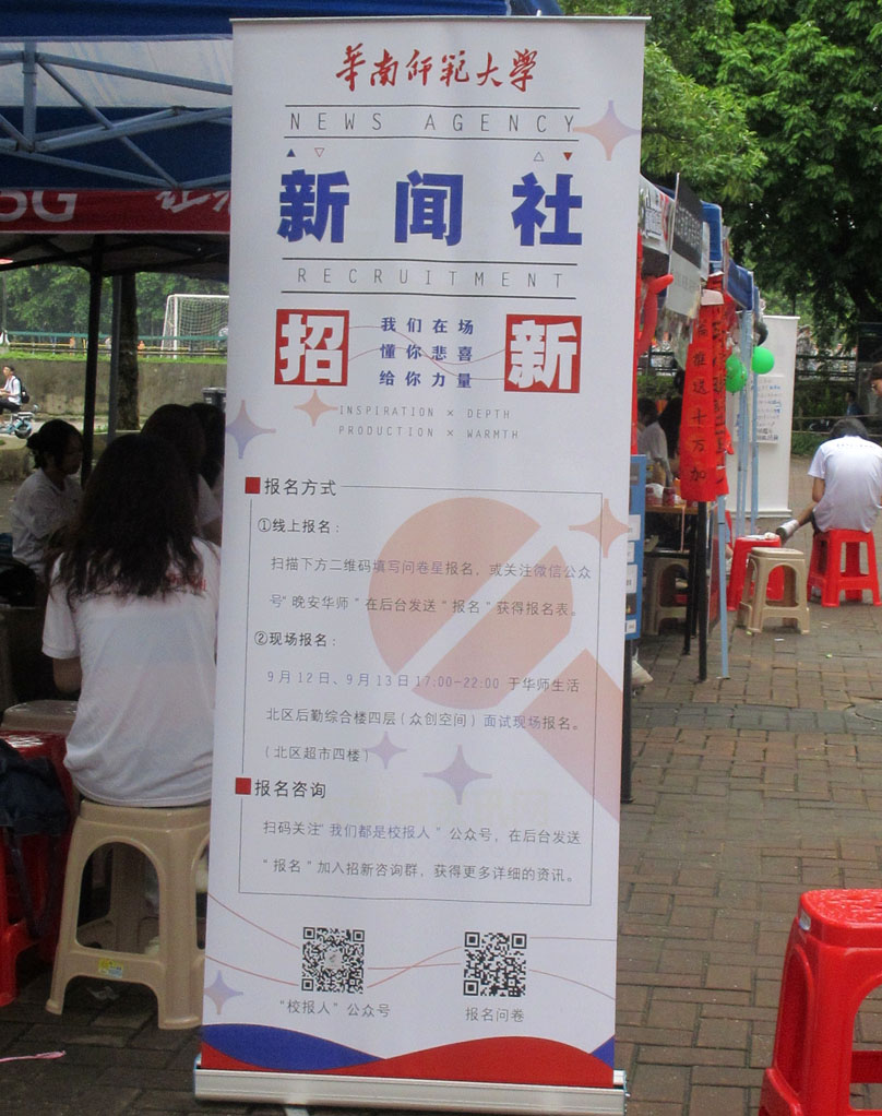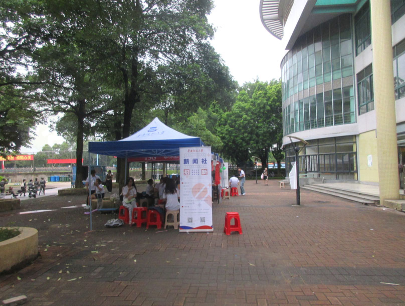 华南师范大学新闻社2023招新摊宣 正在南生活区楠园饭堂外空地进行