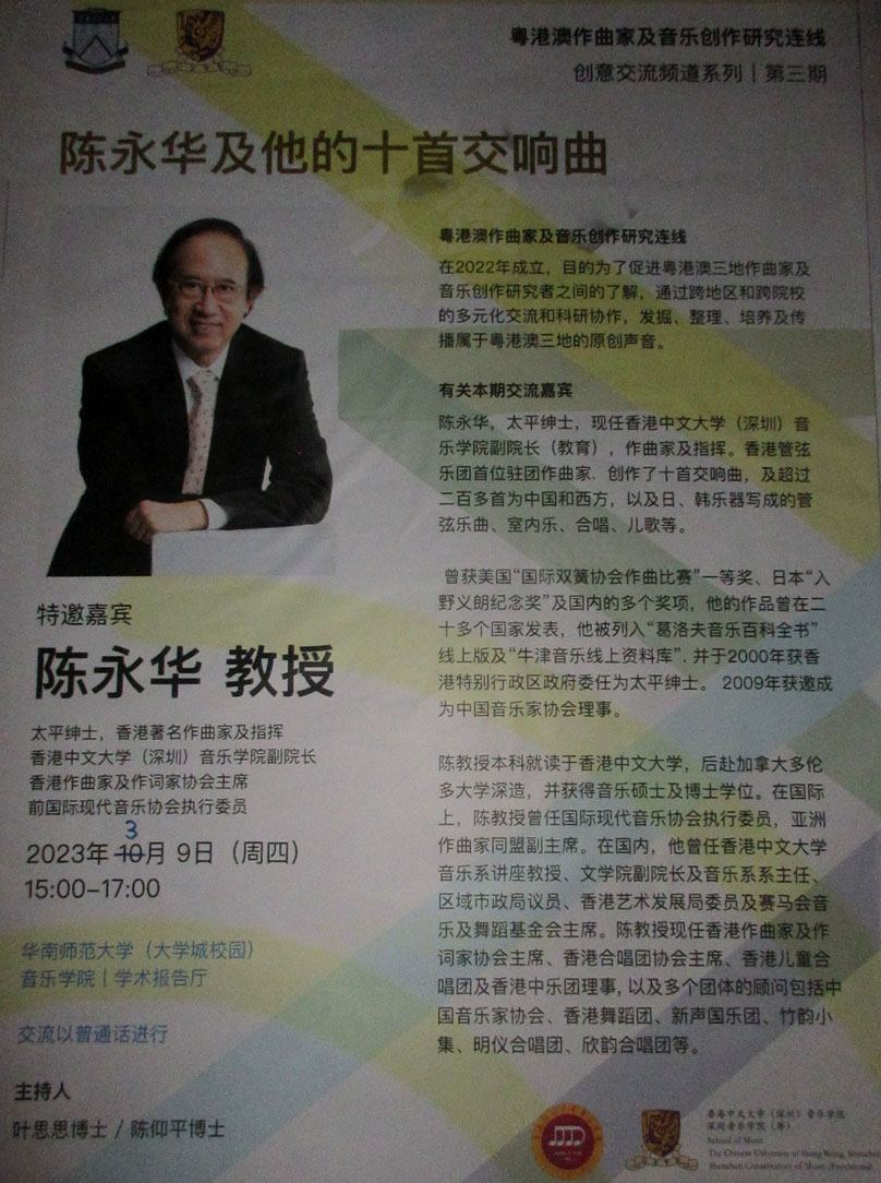 陈永华及他的十首交响曲交流分享会 2023.03.09周四下午15点-17点 华师音乐学院学术报告厅