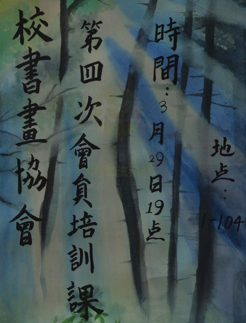 校书画协会第四次会员培训课 时间:3月29日19点 地点:1-104