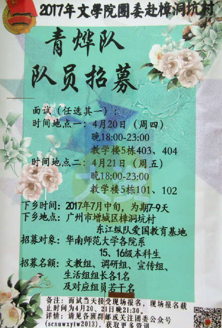 2017年文学院团委赴樟洞坑村青桦队队员招募