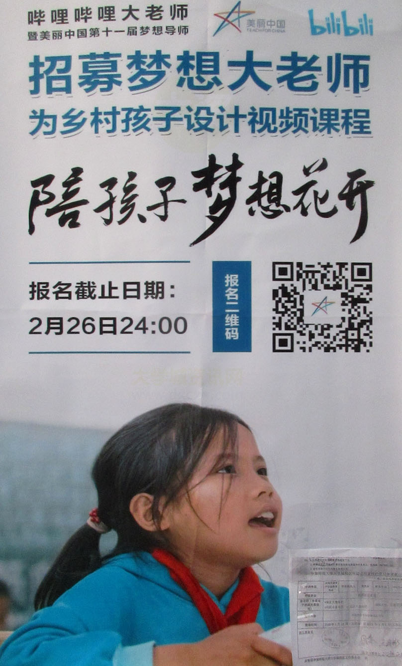 哔哩哔哩大老师暨美丽中国第十一届梦想导师招募 为乡村孩子设计视频教程 扫码报名 报名截止2月26日24点