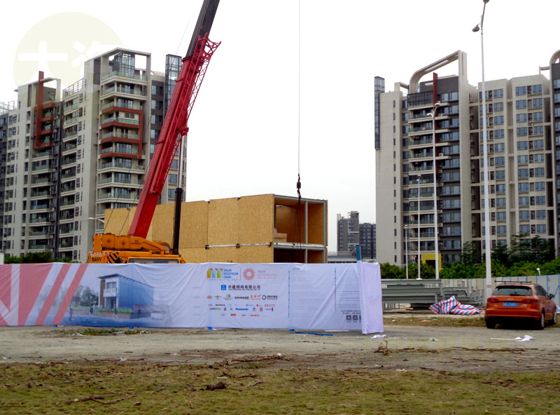 教学区西门停车场南侧正在搭建一个似乎跟太阳能有关的实验箱房空间